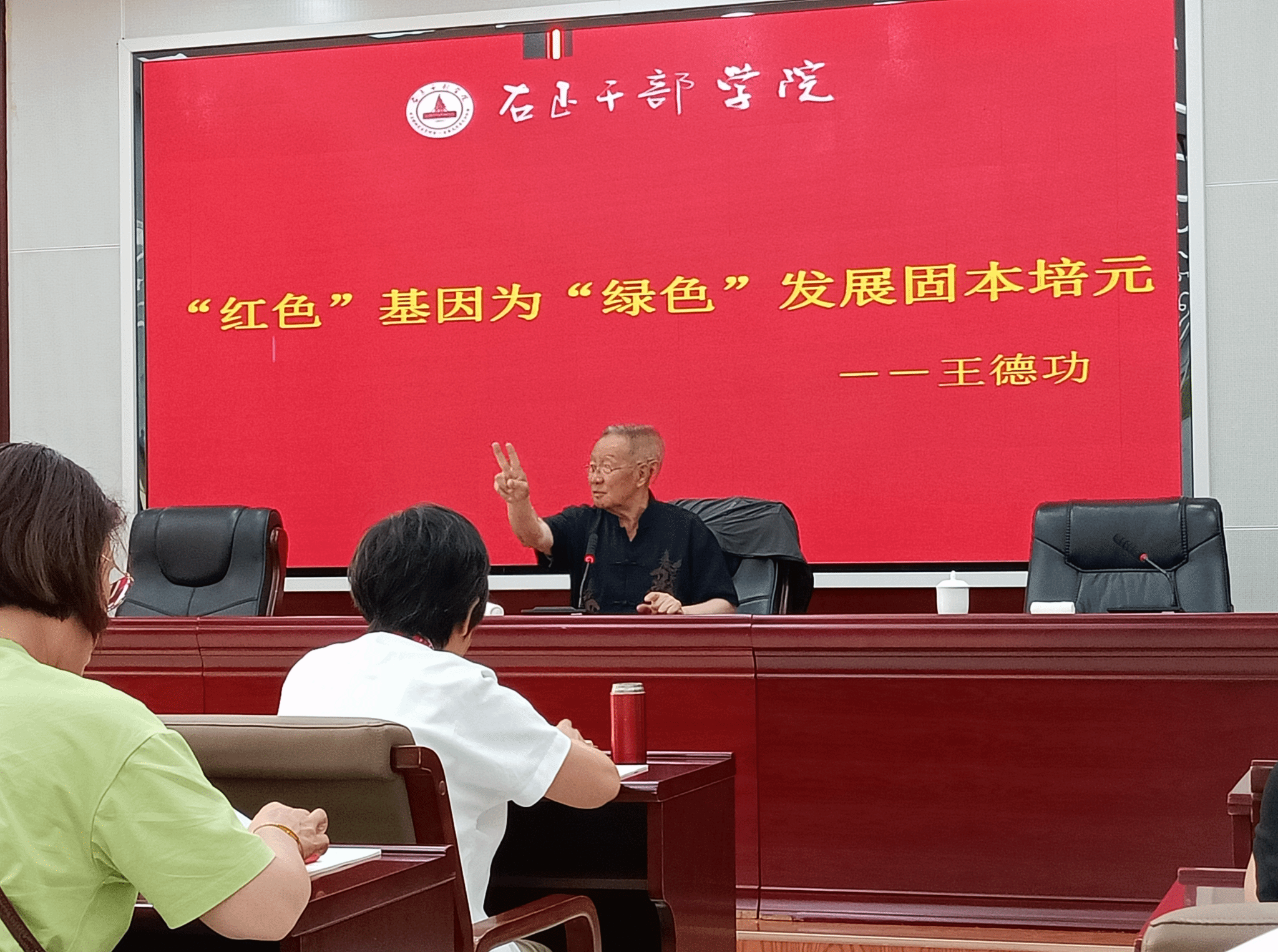 随后,右玉干部学院特聘教授,原右玉县委宣传部部长、右玉县政府副县长、右玉县政协主席王德功作《“红色”基因为“绿色”发展固本培元》的主题报告。