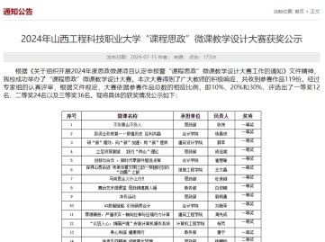 2024年3月-5月,成功举办了第三届“课程思政”微课教学设计大赛。此次大赛激发了广大教师的热烈反响与积极参与,共征集到来自各教学单位的参赛作品119份,充分展现了教师们对课程思政教学的热情与创意。通过专家评审组的严谨评审,并严格按照既定文件规定,我们依据参赛作品总数的10%、20%及30%的比例,精心评选出12名一等奖获得者、24名二等奖获得者以及36名三等奖获得者,有效推动了课程思政教学设计的创新与实践。